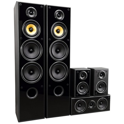- Zestaw zawiera: 2 x kolumna podłogowa / 2 x kolumna surround / 1 x kolumna centralna
