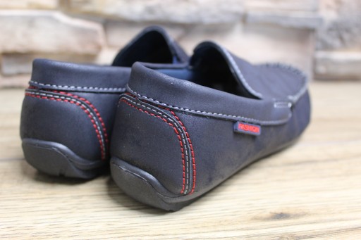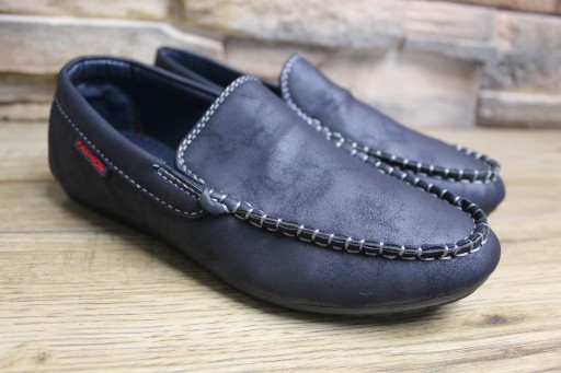 Klasyczne mokasyny wizytowe w kolorze ciemnego granatu. Modne i bardzo wygodne. Wykonane z wysokogatunkowej skóry ekologicznej. Pasujące na każdą szczególną okazję.