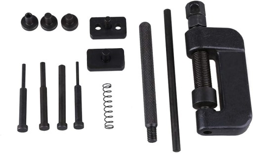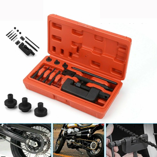 Zakuwarka-nitownica do łańcuchów motocyklowych. Przeznaczona do zakuwania i rozkuwania łańcuchów rozrządu oraz łańcuchów napędowych. Zestaw przydatny w warsztatach motocyklowych, rowerowych i samochodowych.