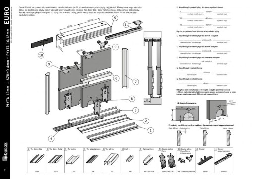 - system do zastosowania z płytą meblową 18 mm lub lustrem / szybą oraz płytą,
