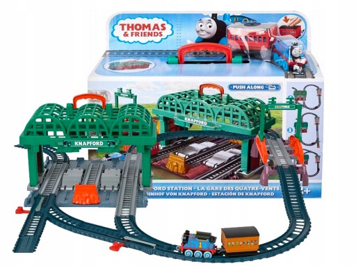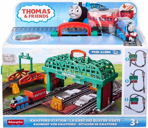 Zestaw torów z linii Tomek i Przyjaciele od Fisher-Price. Dzieci mogą pomóc Tomkowi przewozić pasażerów w specjalnym wagoniku – gdy dziecko naciśnie dach, w środku „pojawiają się” podróżni. W zestawie jest 26 elementów w tym stacja Grodkowo, lokomotywa Tomek do popychania, wagon pasażerski z podróżnymi, znak nad torami oraz most – mały konduktor może prowadzić lokomotywę Tomka przez całą trasę. Po skończonej zabawie zamknij panel stacji, aby przekształcić ją w schowek. Uchwyt u góry umożliwia dzieciom wygodne przenoszenie zestawu.