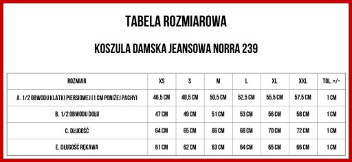 DENIMOWA KOSZULA DAMSKA NORRA 239 to najlepszy wybór do stylizacji total jeans, ale nie tylko. Kobieca jeansowa koszula ma dopasowany krój oraz klasyczny kołnierzyk. Stylowymi detalami są w jej przypadku z pewnością dwie kieszenie z przodu oraz zapięcie na ozdobne napy. Jeansowa koszula idealnie układa się na sylwetce i podkreśla wszystkie jej atuty. Jest wykonana z bawełny wysokiej jakości, co bezpośrednio wpływa na jej trwałość. Wzrost modelki: 175 cm Rozmiar koszuli: S