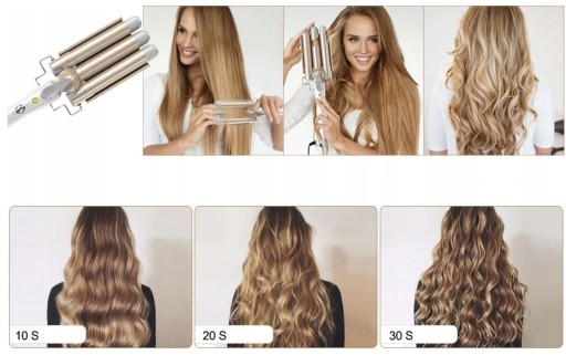 - Lokówki z 3 lufami sprawiają, że włosy są zdrowsze i bardziej naturalne, a ich kształt trwalszy.