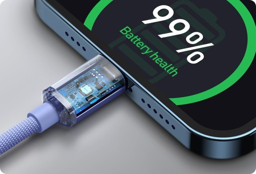 Inteligentne ładowanie: Wykorzystując zaawansowaną technologię inteligentnego ładowania, kabel zapobiega przeładowaniu baterii, zapewniając stabilny prąd i pomagając przedłużyć żywotność baterii. Możesz swobodnie korzystać z urządzenia podczas ładowania, mając pewność, że nie narazisz go na uszkodzenia.