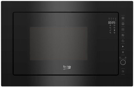 Kuchenka mikrofalowa do zabudowy w kolorze czarny, o pojemności 25l, mocy mikrofal 900W, 5 poziomów mocy, 8 funkcji automatycznych.