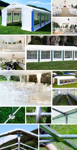 Poszycie sprawdzi się świetnie podczas organizacji każdego plenerowego eventu, bankietu czy festynu. Stanowi idealną ochronę cateringu oraz zaproszonych gości podczas wesela, komunii, pikników oraz innych imprez okolicznościowych. Swoje zastosowanie znajdzie także jako altana, namiot ogrodowy bądź tarasowy. Namiot można używać również jako powierzchnie handlowe oraz dodatkowe miejsce w swoim lokalu.