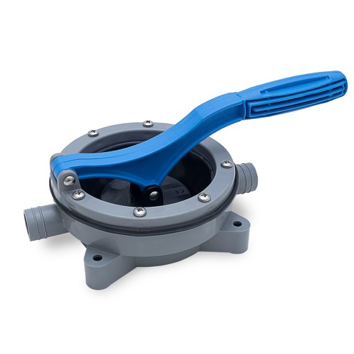 - Solidna, ręczna pompa zęzowa do montażu pionowego lub poziomego. Samozasysająca z jednokomorową membraną i zaworami zwrotnymi z kauczuku nitrylowego. Korpus pompy i uchwyt z polipropylenu o wysokiej gęstości, złączki metalowe ze stali nierdzewnej.