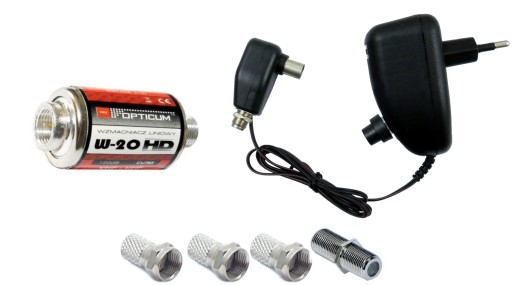 Wzmacniacz W-20 HD OPTICUM przeznaczony jest dla domowych instalacji antenowych do wzmocnienia naziemnych sygnałów TV analogowych oraz cyfrowych w paśmie 5-862 MHz.