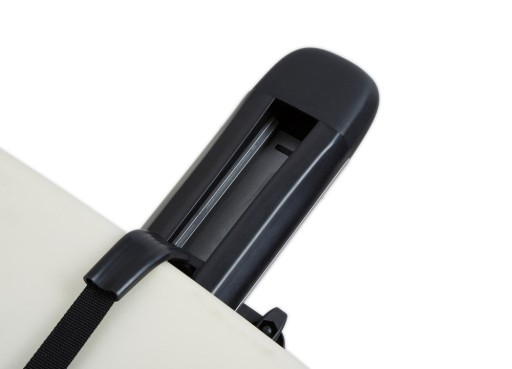- Zintegrowane pasy mocujące, z możliwością schowania luźnych końców w uchwycie na czas podróży.