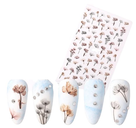 NAKLEJKI NA PAZNOKCIE SAMOPRZYLEPNE KOLOROWE PASTELOWE KWIATKI delikatne