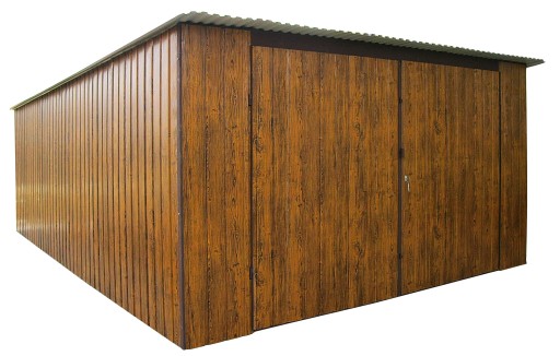 - boki garażu wykonane z blachy o szerokim na 10 cm poziomym panelu jeszcze bardziej przypominającym drewno w układzie pionowym,