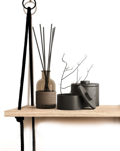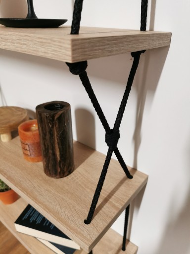 Półki na czarnych sznurach