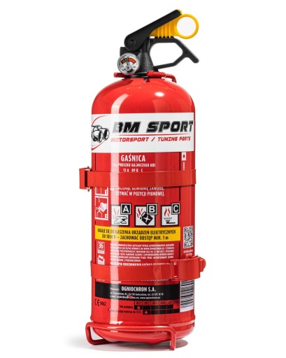 Gaśnica BM Sport z mocowaniem zgodnym z załącznikiem J. Produkowana zgodnie z wymaganiami rynku krajowego i unijnego w oparciu o certyfikowany system jakości ISO 9001. Spełnia wymagania normy europejskiej EN3 oraz Dyrektywy Bezpieczeństwa PED 97/23/EC.