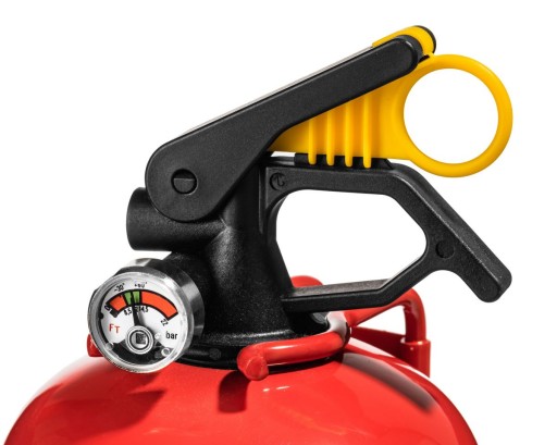 - Naciśnij dźwignię spustową, aby uwolnić środek gaśniczy.