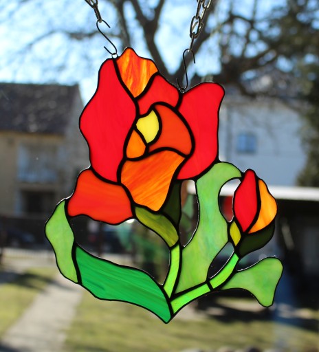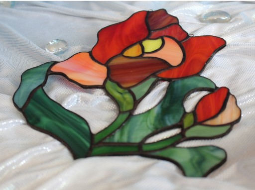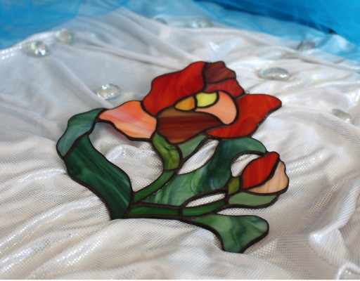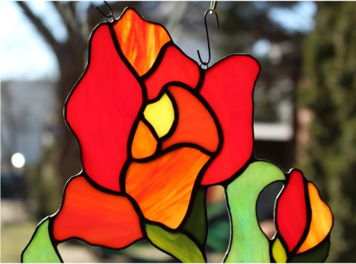 Witrażowy kwiat wykonany jest w 100% w Polsce w 100% ręcznie przez polskich rzemieślników.