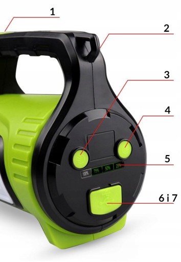 - Zaślepka do gniazda USB 2.0 do ładownia urządzeń zewnętrznych (powerbank)i gniazda microUSB do ładowania latarki. Aby naładować akumulator, wystarczy podłączyć będący w komplecie kabel USB i podłączyć do ładowarki sieciowej lub samochodowej.