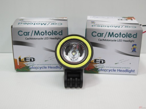 Zestaw dwóch małych halogenów motocyklowych cree led TYP LGLE 10-XLS o mocy 10Wat każdy, moc świecenia ok.1000 lm temperatura barwy 5500k (zimna biała) wodoodporny kolor obudowy czarny, kolor ringu biały .