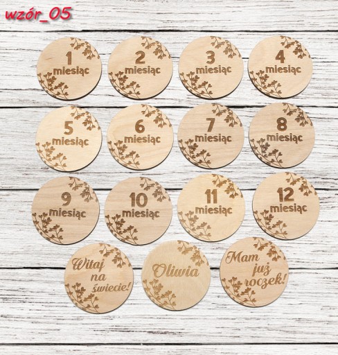 Drewniane tabliczki do robienia twórczych zdjęć twojej pociechy dokumentujące PIERWSZY ROK ŻYCIA.