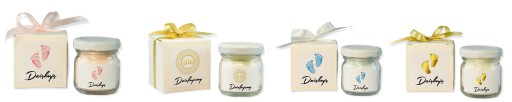 W naszej ofercie posiadamy idealne upominki dla gości na chrzest, które podkreślą wyjątkowy charakter uroczystości. Mini świeczka z naturalnego wosku sojowego w efektownym, tekturowym pudełeczku będzie idealnym prezentem dla gości.