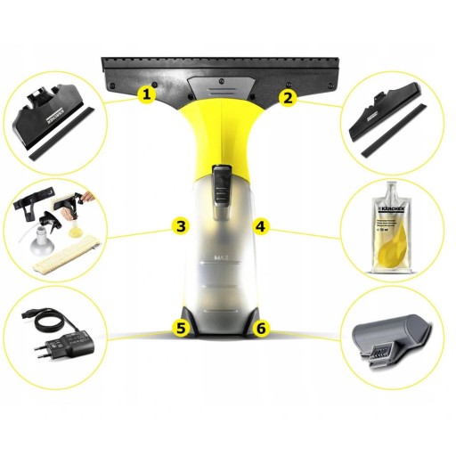 Najnowszy model myjki do okien Kärcher. Dzięki innowacyjnej technologii listew zbierających i długiej pracy na jednym ładowaniu zadba o czyste okna bez smug i zacieków.