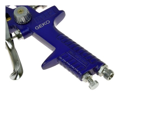 - pokrętło regulacji u dołu rękojeści urządzenia pozwala regulować ilość powietrza docierającego do dyszy pistoletu z kompresora