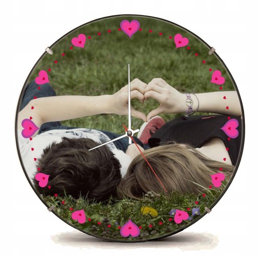 Zegar ścienny z Twoim zdjęciem. Jest to idealny prezent na Dzień Kobiet, Walentynki, Dzień Babci i Dziadka, Dzień Dziecka, Pierwsza Komunia Święta i inne okazje.