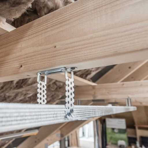 W celu wykonania sufitu podwieszanego konieczne jest wykonanie odpowiedniej konstrukcji ze specjalnych profili stalowych, do których zamontowane zostają płyty gipsowo-kartonowe. Wieszak płaski ES służy do mocowania takich profili do sufitu – produkt mocuje i zawiesza ruszt na elementach nośnych obiektu – służy do bezpośredniego montażu profili sufitowych CD pod stropami z belek drewnianych i na skosach dachowych oraz obudów ściennych do ścian masywnych. Jest przeznaczony do stosowania wewnątrz pomieszczeń. Może być bezpiecznie stosowany z płytami gipsowymi ze względu na właściwości antykorozyjne - został wykonany z blachy pokrytej powłoką cynkową, która nie ulega zniszczeniu pod wpływem kwaśnego odczynu płyt gipsowych.