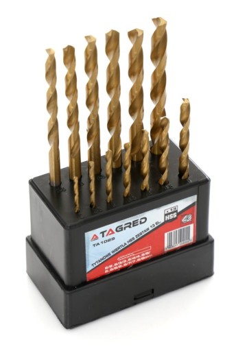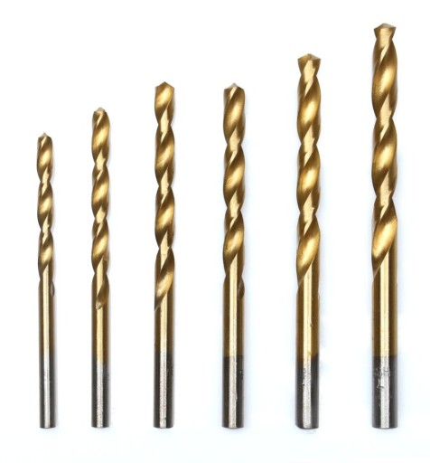 - Wiertła wykonane ze stali szybkotnącej HSS oraz pokryte azotkiem tytanu