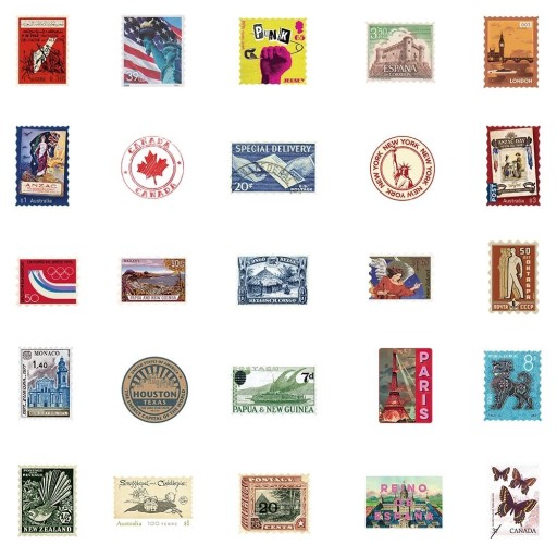 НАКЛЕЙКИ ДЛЯ НОУТБУКА МИКС ПОЧТОВЫЕ МАРКИ 50 шт.