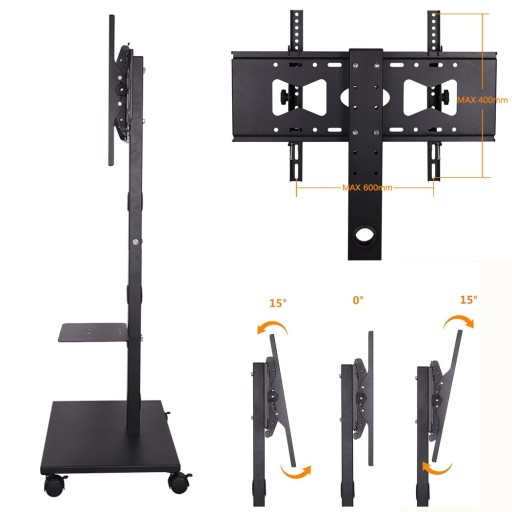 Ustaw telewizor zgodnie z dokładnymi specyfikacjami! Kąt regulacji: Pochylenie -15°~ +15°, a panel TV można regulować w górę iw dół, aby zapewnić komfort oglądania.