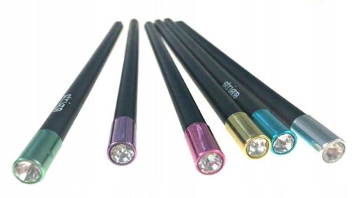 Ozdobne zakończenia ołówka jest dostępne w 5 metalicznych kolorach: fioletowym, różowym, zielonym, niebieskim oraz złotym.