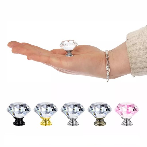 Uchwyty meblowe KRYSZTAŁ będą idealnycm wykończeniem kaźdych mebli. Nadadzą wnętrzu szyku i blasku w stylu Glamour. Wykonane są z najwyższej jakości szkła kryształowego K9. Wyróżniają się doskonałą zdolnością odbijania światła.
