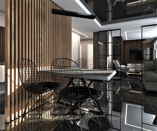 Ścianki z listew lamelowych są idealnym sposobem do podzielenia pomieszczeń na strefy , możemy podzielić kuchnie od salonu lub przestrzeń biurową.