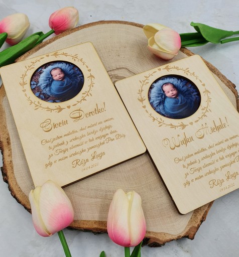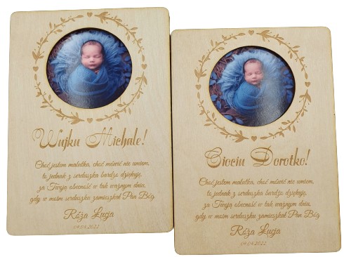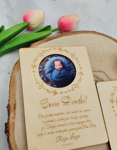 Przedstawiamy Państwu drewnianą ramkę ze zdjęciem dziecka jako formę podziękowania Chrzestnej, Chrzestnemu, Babci, Dziadkowi...