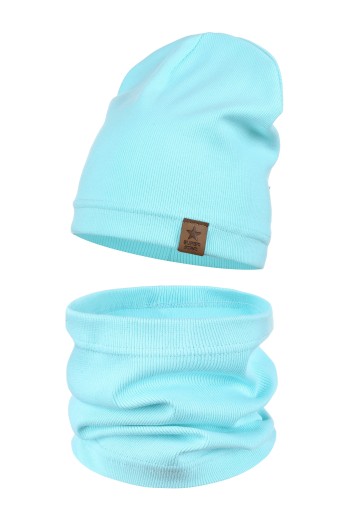 KOMPLET DZIECIĘCY BAWEŁNIANY CZAPKA KOMIN NA JESIEŃ ZIMĘ TURKUSOWY 48-52