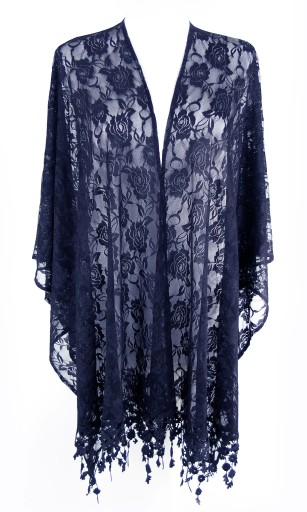WYTWORNY KORONKOWY GRANATOWY SZAL Z FRĘDZLAMI Z GIPIURY