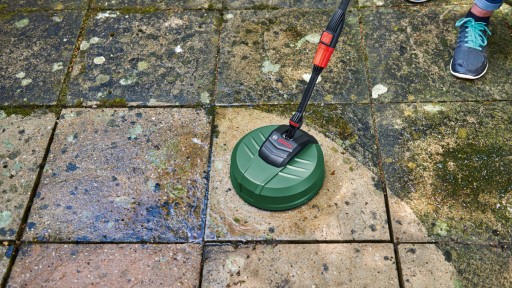 Przystawka AquaSurf 250 do mycia tarasów jest przeznaczona do szybkiego czyszczenia małych i średnich podjazdów oraz tarasów. Z łatwością porusza się nad podłożem, błyskawicznie usuwając algi, porosty, mech i inne ciężkie do usunięcia zabrudzenia.