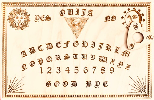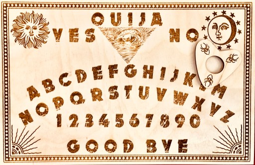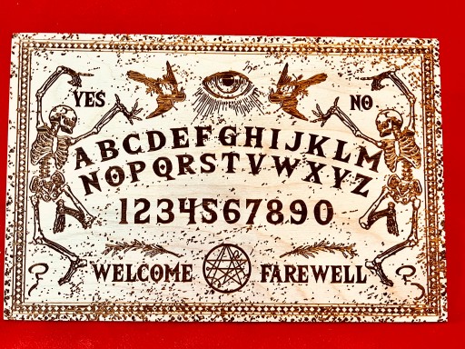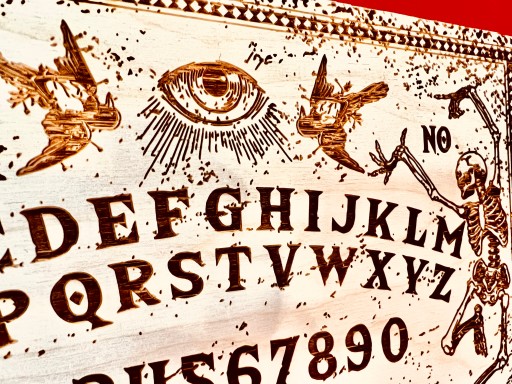 Klasyczna tablica spirytystyczna Ouija,wykonywana na zamówienie w naszej pracowni grawerskiej GRAWERNIADDZ.