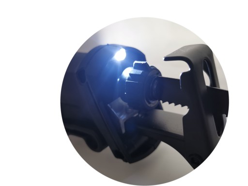 Piła posiada podświetlenie obszaru roboczego LED. Jest to najwyższy model piły szablastej EUROTEC, doceniony za wytrzymałość i niezawodność.