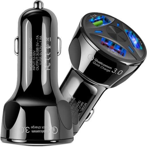- Inteligentna ładowarka samochodowa z 3 portami USB (1x USB - QC3.0 i 2x USB - 2.1A)