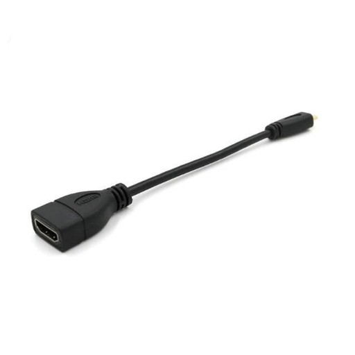 Adapter microHDMI - HDMI koloru czarnego, umożliwiający podłączenie urządzeń wyposażonych w złącze microHDMI do telewizora, monitora czy ekranu przy pomocy standardowego przewodu HDMI. Łączna długość adaptera to 16cm.