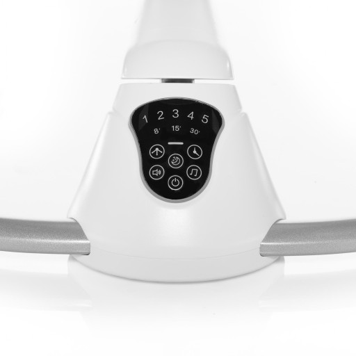 Leżaczek Lullaby przynosi komfort rodzicom w postaci bardzo prostej obsługi. Obracanie leżaczka o 360° pozwoli Ci pozostać w kontakcie z dzieciątkiem bez konieczności manipulowania z całą konstrukcją. Do sterowania funkcjami leżaczka służy bardzo przejrzysty panel dotykowy wykonany w nowoczesnym wzornictwie. Można na nim ustawiać intensywność (5 stopni) i czas bujania (8, 15 lub 30 minut), jak również automatyczne włączenie bujania przy stwierdzeniu ruchu (niepokoju) dziecka. Dla uspokojenia dziecka oczywiście dostępne są melodie i dźwięki natury z dodatkową regulacją głośności.
