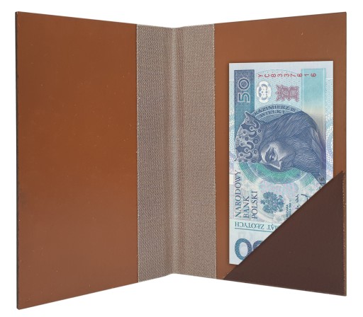 - w środku skórzana, praktyczna zakładka na paragon,