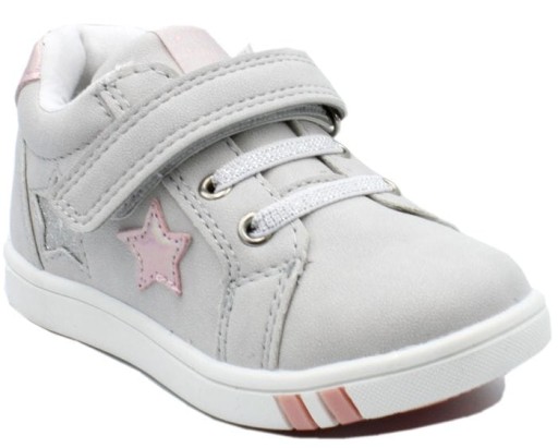Antypoślizgowa podeszwa. Buciki ładnie wykończone, dziewczęce, zapinane na rzep. Z boku ozdobione gwiazdkami.