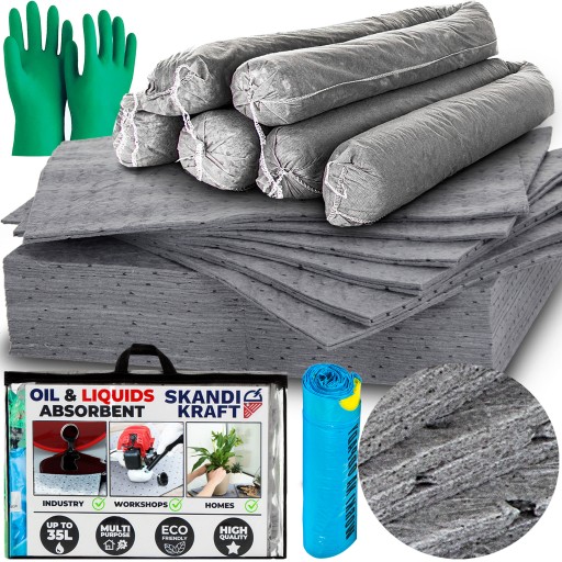 Nieodzowny produkt w każdym domu i warsztacie! Sorbenty uniwersalne pomogą Ci w zachowaniu porządku i zadbają o bezpieczeństwo, łatwe w użyciu. Po prostu rozkładasz matę w miejscu rozlanej cieczy. Dzięki ich zastosowaniu zbierzesz i usuniesz plamy z oleju, wody, paliwa, tłuszczy czy chłodziwa. Wygoda użytkowania i oszczędność czasu dla Ciebie! Sorbenty są gotowe do natychmiastowego użycia w warsztacie, restauracji czy zakładzie pracy. Forma maty jest wygodna do zastosowania, a zestaw znajduje się w praktycznej do przechowywania torbie. Torba zmieści się w szafie, garażu, możesz zabrać ją ze sobą na wyjazd. W torbie znajduje się pełen zestaw do wykorzystania mata, wąż, rękawice i worki, dzięki temu dbając o środowisko, szybko zutylizujesz niebezpieczne substancje! Zawsze, gdy wydarzy się coś niespodziewanego.