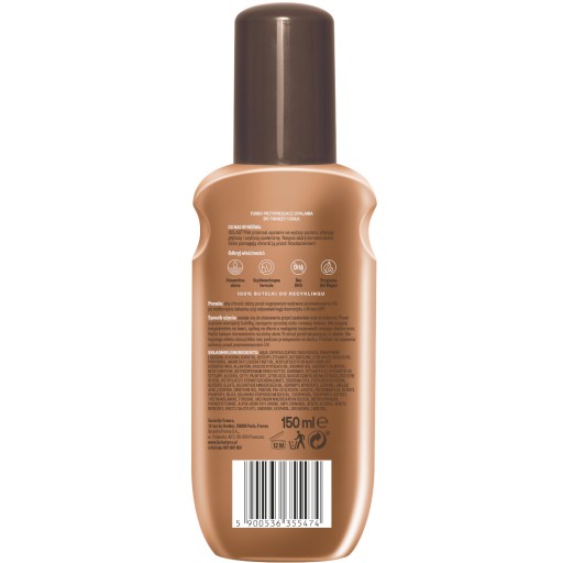 Obecny w formule składnik przyspieszający opalanie skraca proces powstawania opalenizny, stymulując wytwarzanie melaniny. Jednocześnie skóra pozostaje nawilżona i miękka, otulona letnim zapachem. Karotenoidy, naturalne i silne antyoksydanty, pomagają pobudzić własny system obronny skóry, wykazują właściwości pielęgnacyjne.