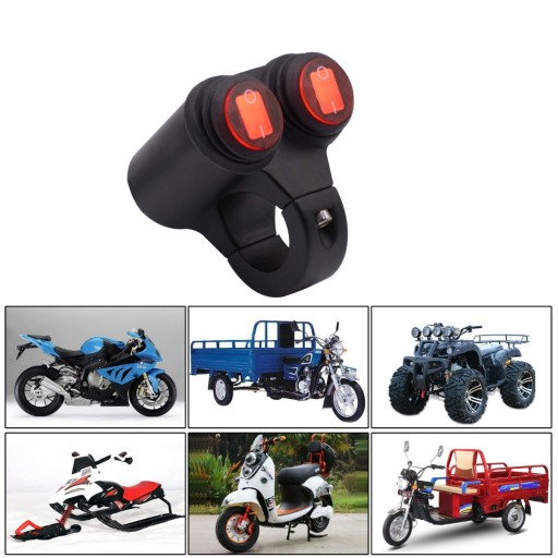 Podwójny przełącznik ON/OFF montowany do kierownicy. Jest to uniwersalny przełącznik pasujący do motocykli, krossów, quadów i innych pojazdów.
