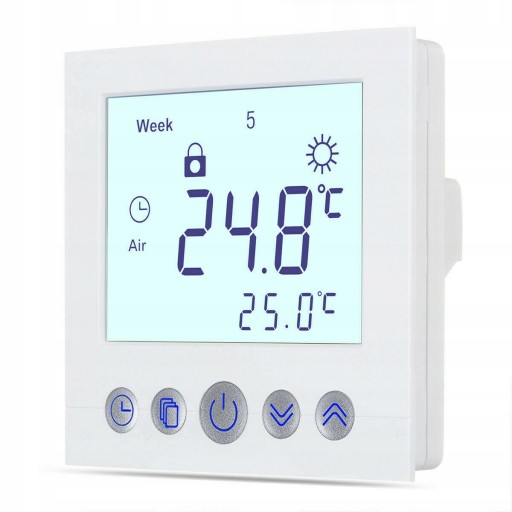 Ten termostat grzewczy z programowaniem tygodniowym wykorzystuje najnowsze sterowanie komputerowe jednoukładowe