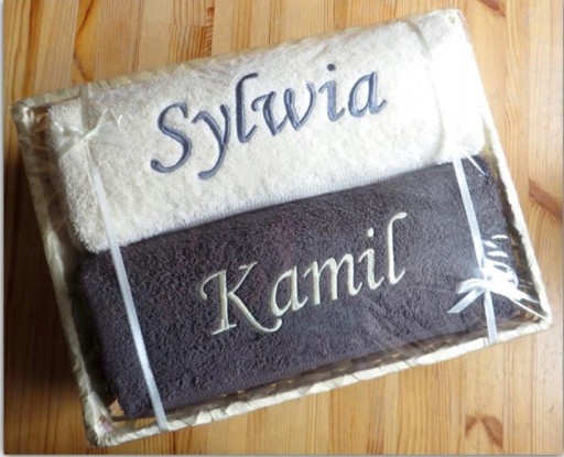 Ta aukcja i cena dotyczą kompletu 2 szt. dużych ręczników kąpielowych 70x140 cm z Twoim haftem w postaci imienia lub dowolnego 1 SŁOWA (bez grafiki).