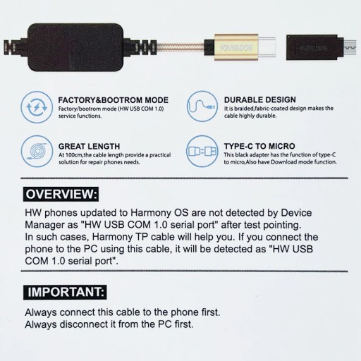 Kabel Harmony TP to kabel typu-C używany do telefonów Huawei, aby odblokować bootloader, zrobić FRP